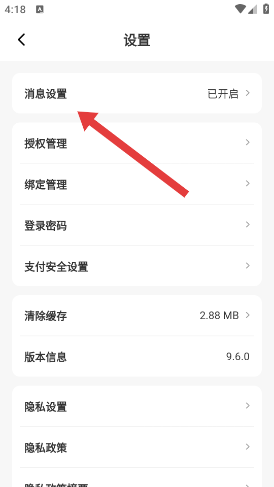 3、在设置的页面中,点击消息设置的选项,进入消息设置的页面。