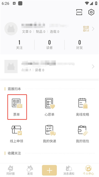 5、之后继续在自己的首页点击下方方框中的票根选项,进入就可以看到自己所购买的所有票了,然后在这里进行退票的操作;