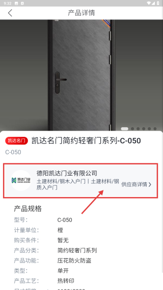 4、在产品详情页,查看供应商德配凯达门业有限公司的相关信息。