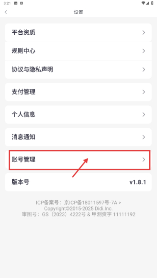4、在账号管理页面,点击账号注销选项,发起账号注销操作。