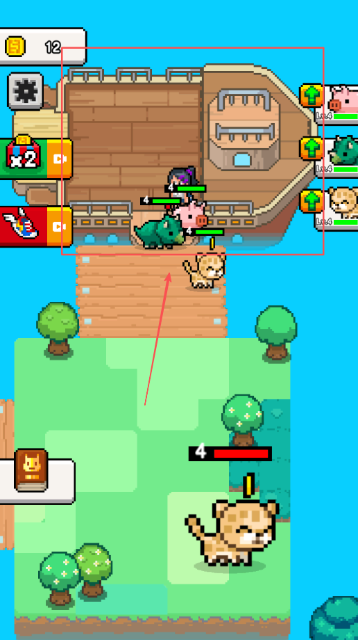 4、持续带领小猪击败沿途怪兽、收集宠物,一直朝着目标前进,直到成功登上指定的船只,就能完成当前关卡通关。