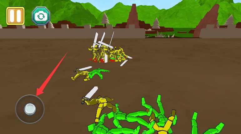 3、通过滑动左侧摇杆切换战场视角,可实时观察战况变化与双方血量情况。
