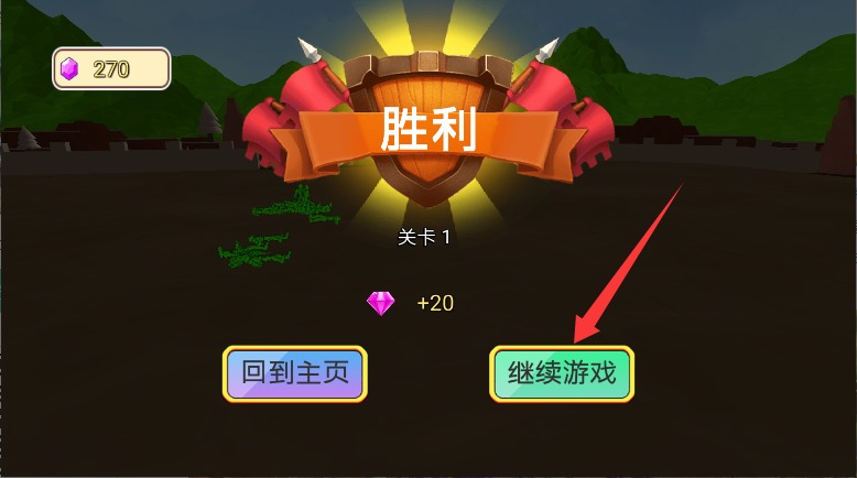 4、取得胜利后系统将会发放钻石奖励,点击继续游戏可挑战后续进阶关卡。