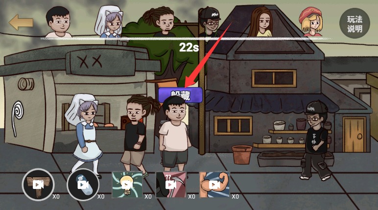 4、进入场景后需要在倒计时内寻找藏身点,出现躲藏按钮时点击完成隐蔽。