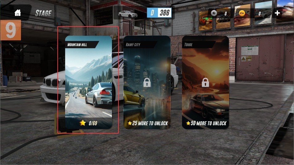 3、每个关卡里包含多张地图,城市街道或山地赛道都有不同特点,根据车辆性能选择合适的地图。