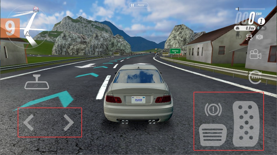 4、操作时左手按住屏幕左侧控制方向,右手分别点击油门和刹车键,注意弯道时要提前减速。