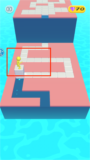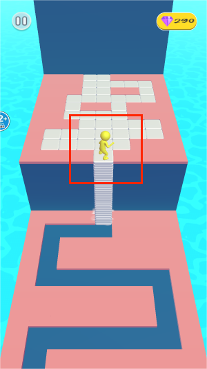 1、进入关卡后,角色会自动向前奔跑,通过手指在屏幕左右滑动来控制其横向移动,以收集路径上的方块,并确保及时填充道路缺口防止掉落。