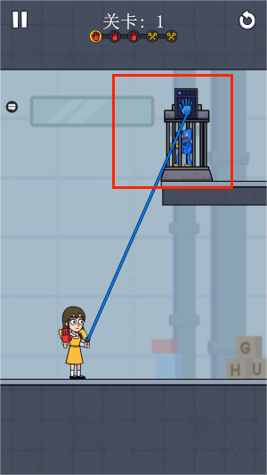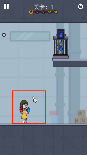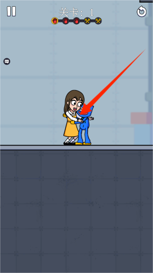 2、通过手指长按并拖拽的操作方式,将悬空的小人安全地移动到地面。