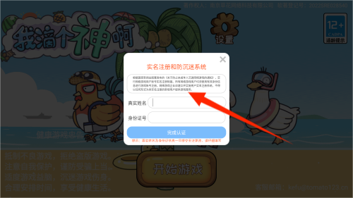1、初次进入游戏时,根据指引完成个人实名认证环节以顺利开启。