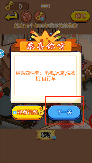 4、顺利寻得所有目标后,即可成功通关并显示出胜利的结算界面。