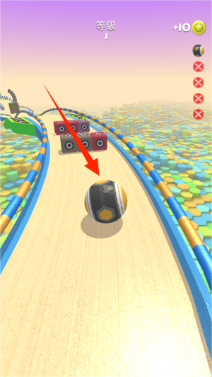 4、细腻的3D建模与明快的色调搭配营造出舒适的游戏氛围,配合动感音效与小球滚动节奏,从视听层面强化了沉浸式的跑酷乐趣。