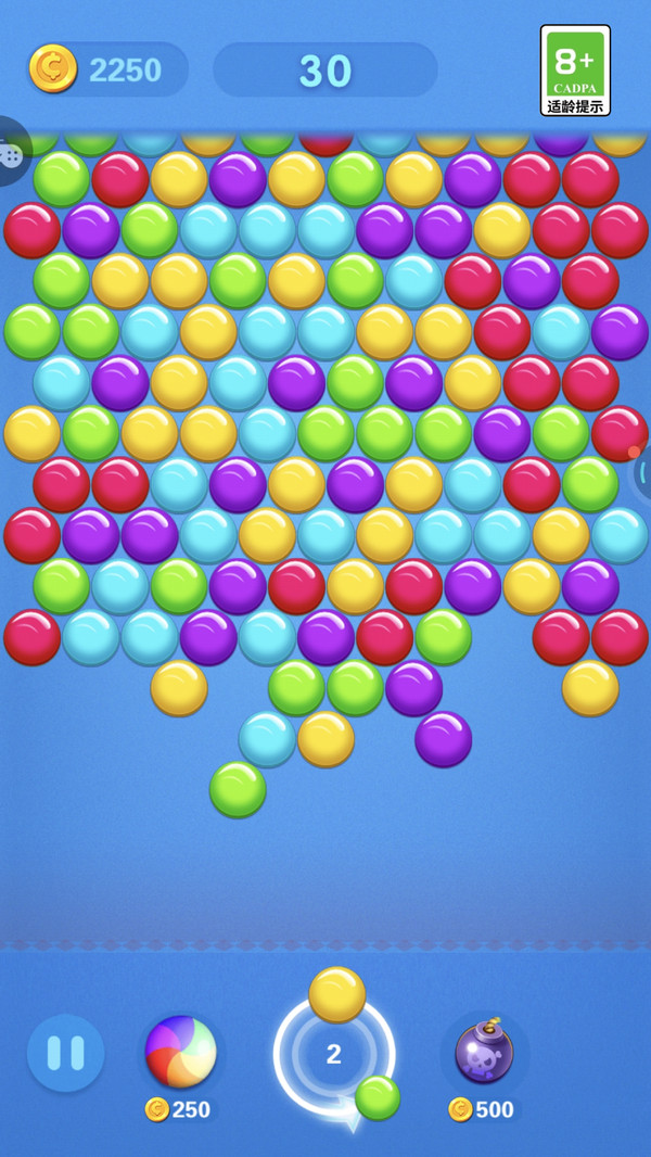 2.操作简单:通过瞄准并发射彩色泡泡,规则直观易懂,任何年龄段的玩家都能快速上手,畅快体验经典又新颖的玩法。