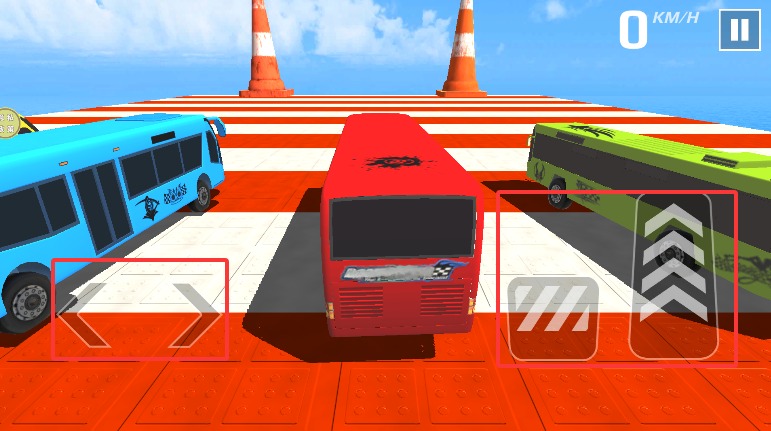 4、使用左侧按钮控制车辆左右转向,右侧按键控制加速行驶与倒车功能开始闯关。