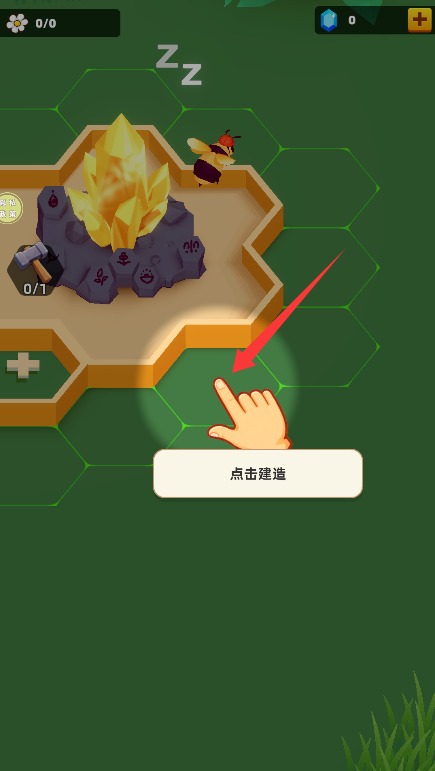 1、进入游戏后首先点击建造功能入口,开始规划你的蜜蜂王国基础设施布局。