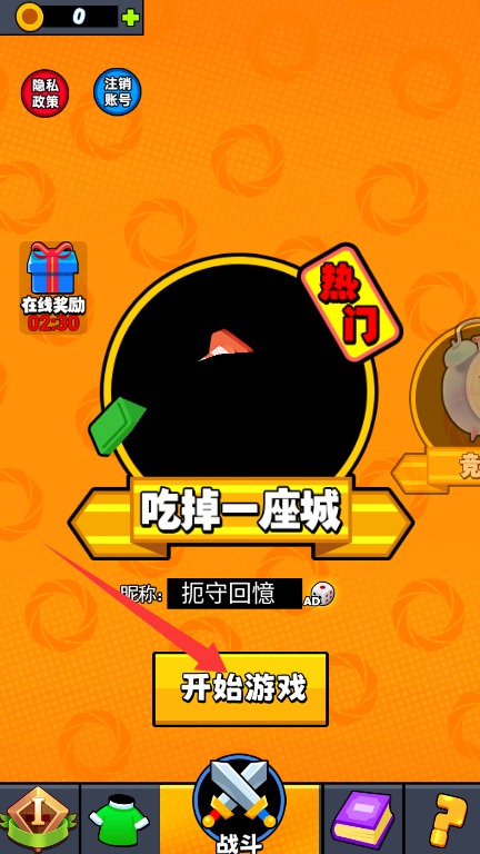 1、启动游戏后选择要挑战的模式并点击开始按钮,准备开启黑洞吞噬城市之旅。