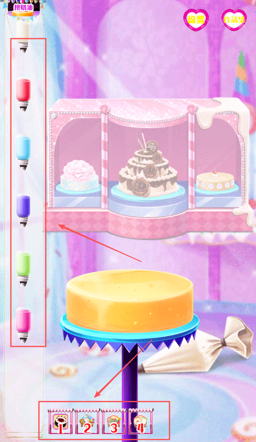 4、按照提示完成蛋糕烘焙后,用糖果、糖屑、冰淇淋等装饰,把蛋糕打扮得更精致,完成后还能欣赏自己的创意成果。