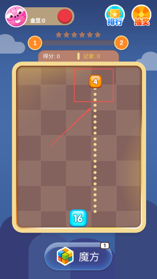 2、拖动方块的时候,可以把它移到和自己数字一样的方块正上方,松手让它掉下去,两个方块就会合成相加后的新数字。