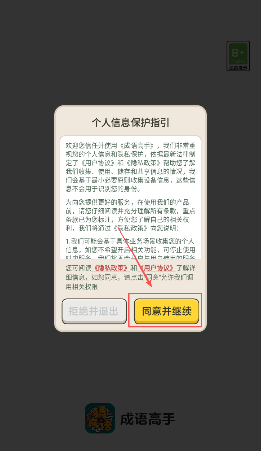 2、完成协议同意后,在界面上找到开始游戏的按钮,点击这个按钮,就能正式进入游戏开始挑战。