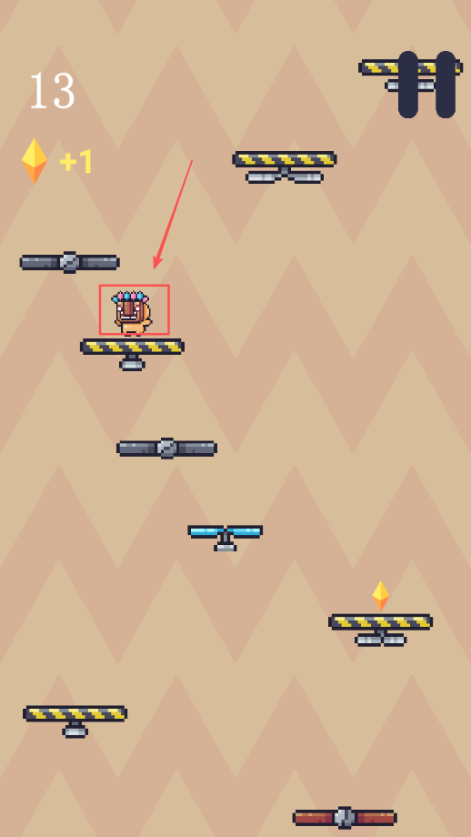 3、遇到空中的障碍物时,快速调整点击方向,让小人绕开障碍物,同时还要确保避开障碍后能落在安全的平台上。