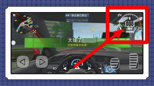 1.速度显示:右上角的速度表实时显示当前行驶时速,帮助玩家掌握驾驶节奏,更好地控制车辆完成竞速任务。