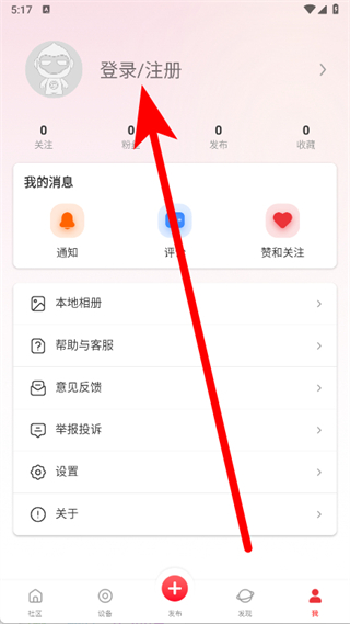 3、在我的页面,点击登录注册。