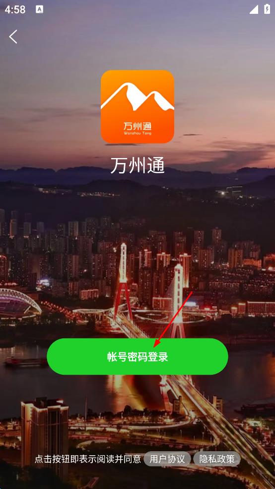 4、在帐号密码登录界面,勾选“阅读并同意用户协议、隐私政策”,输入账号/手机号和密码,点击“登录”即可。