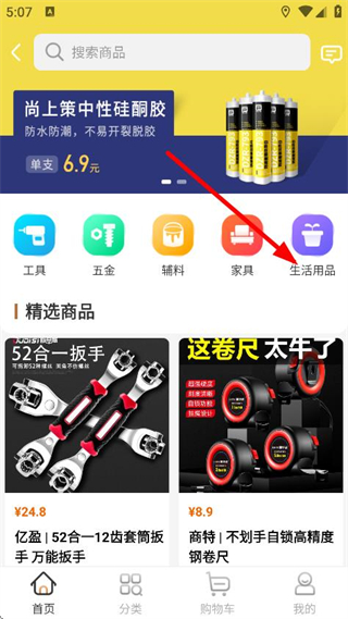 2、在商城页面,点击生活用品,进入生活用品分类页面。