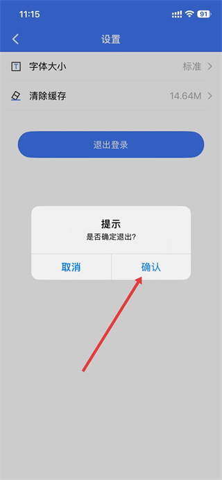 4、在弹出的提示框中,点击确认,即可完成退出登录操作。