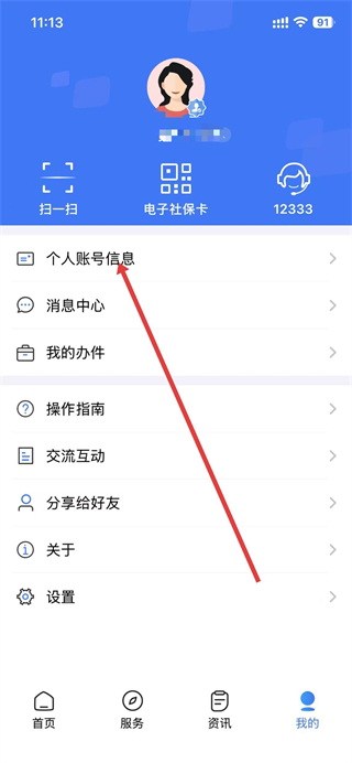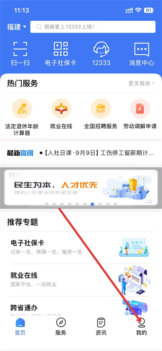 1、打开掌上12333,点击底部导航栏最右侧我的选项。