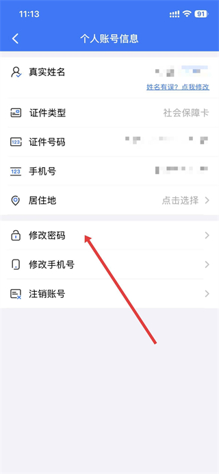 3、进入个人账号信息页面后,找到并点击修改密码选项。