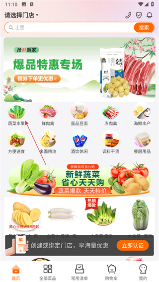 1、新鲜蔬菜、肉禽蛋类、水产海鲜、生活百货、酒水饮料、休闲零食、粮油干