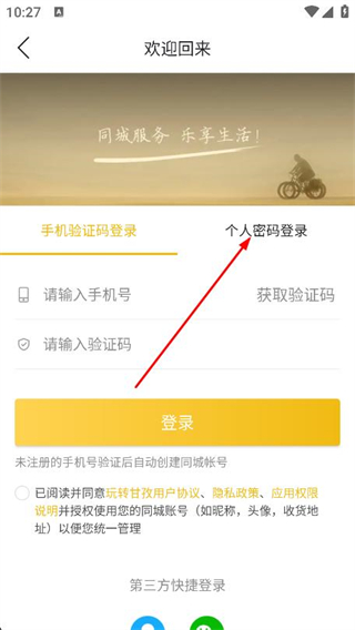 3、进入登录页面后,找到并点击个人密码登录选项。