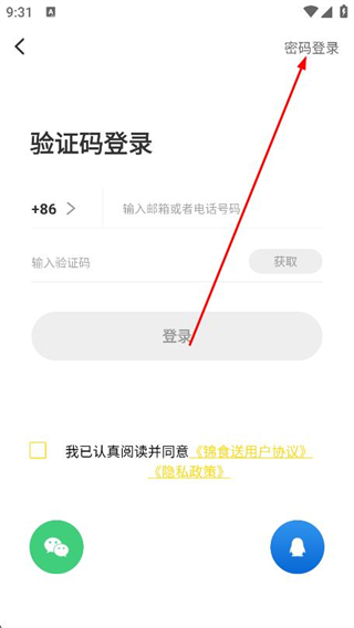 3、进入登录页面后,点击右上角的密码登录选项。