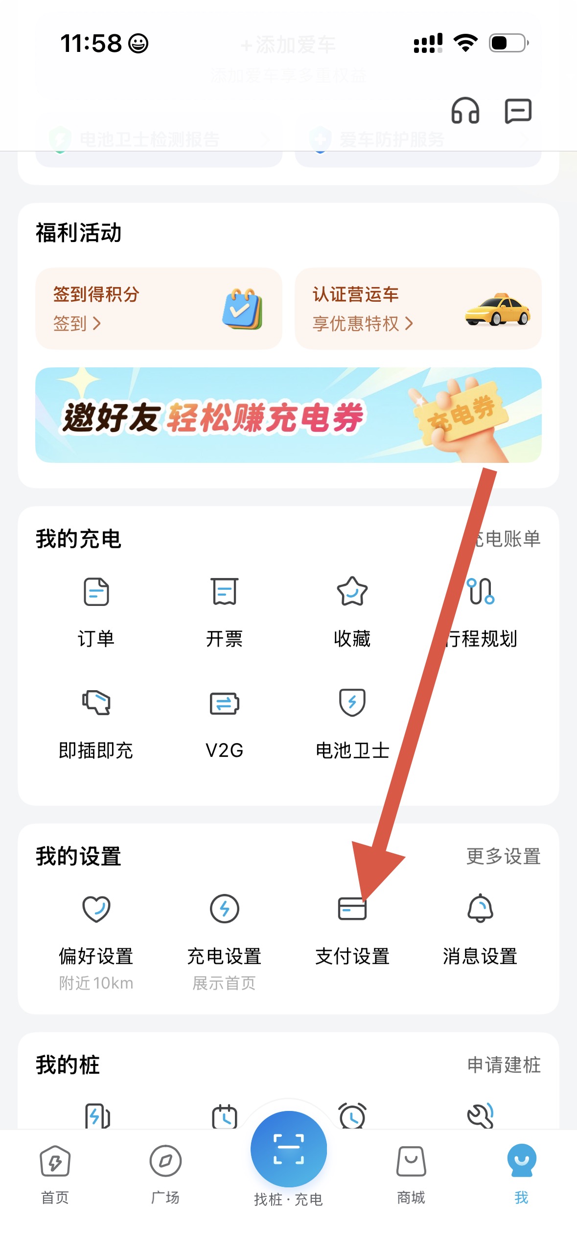 2、在个人界面中,找到并点击支付设置选项,进入支付设置页面。