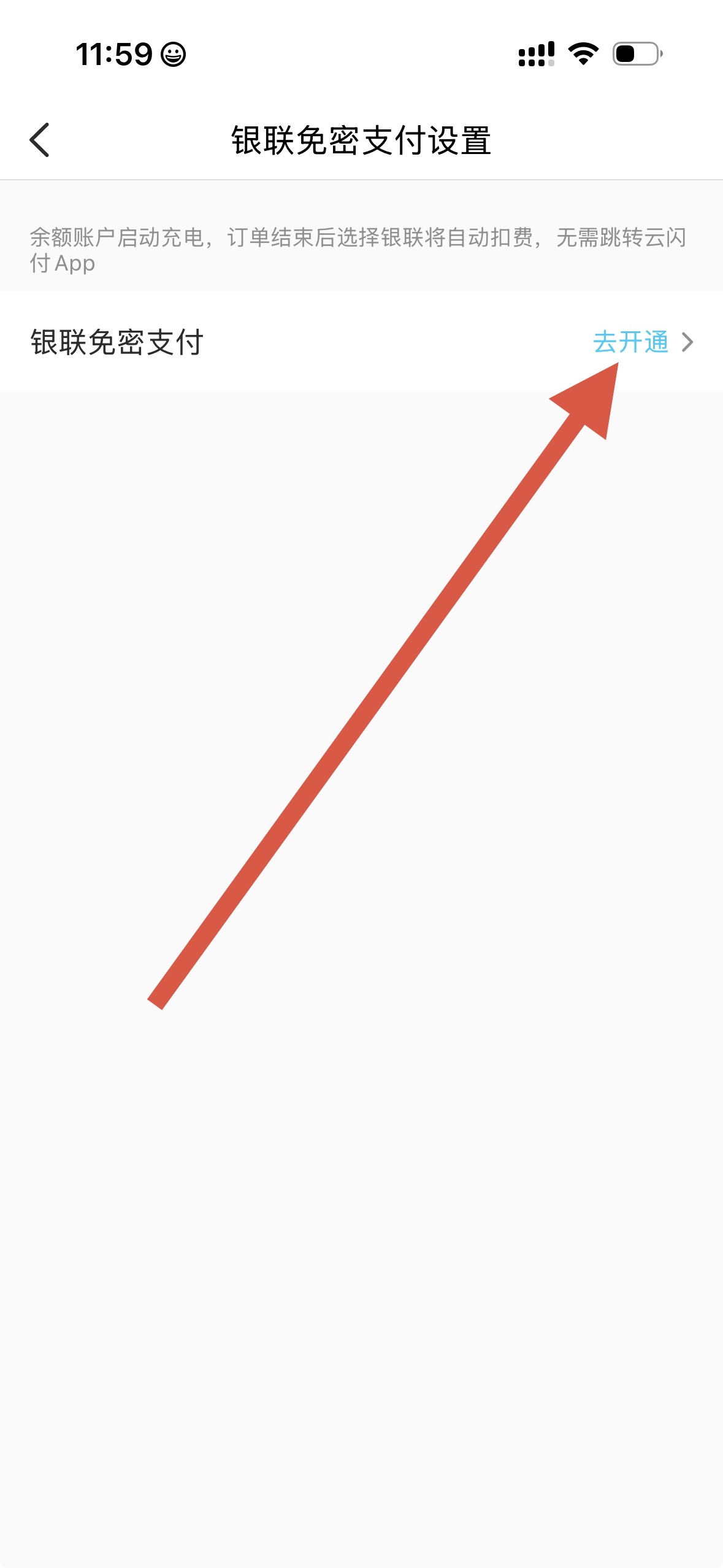 4、进入相应支付方式设置界面后,按提示操作,点击去开通,即可完成支付方式设置。