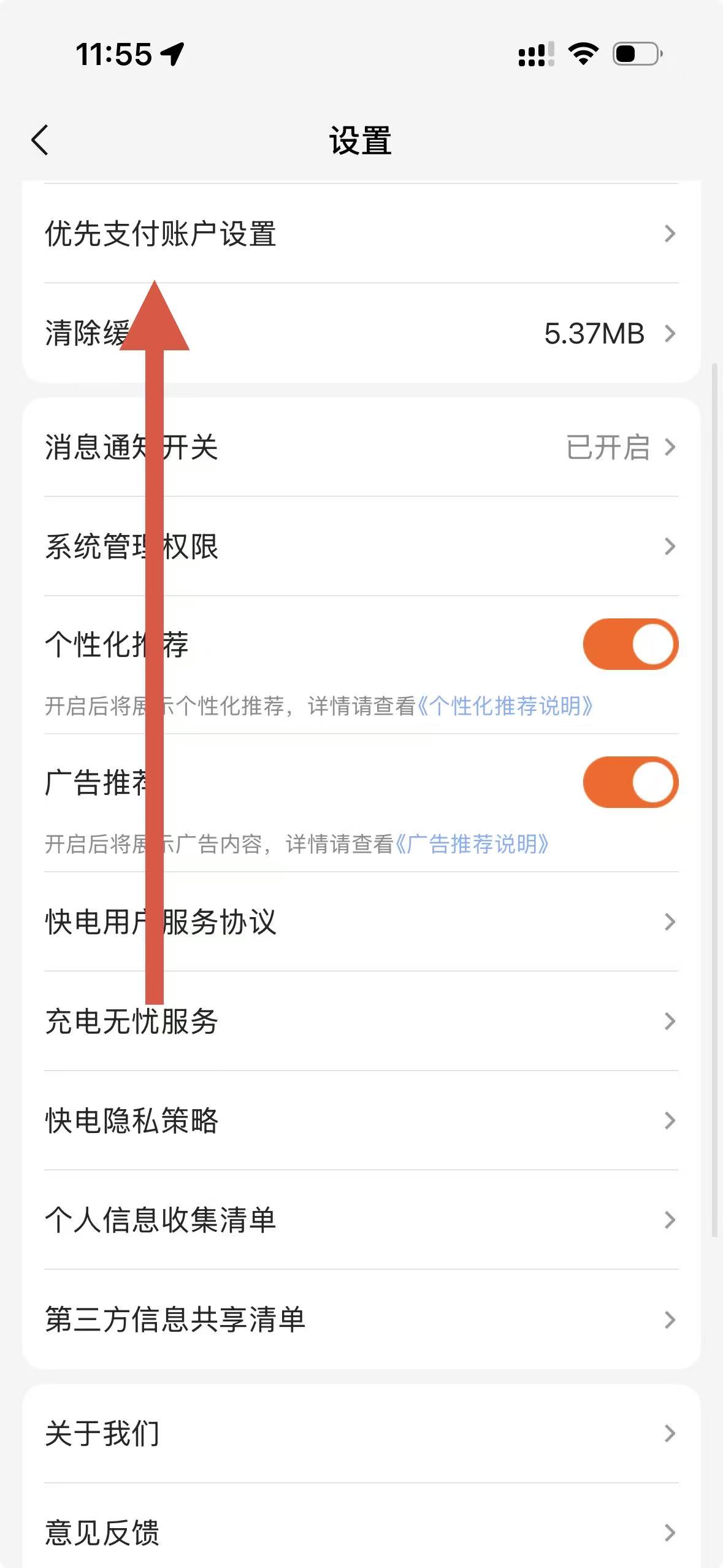 3、在设置界面里,点击优先支付账户设置选项进入支付设置页面。