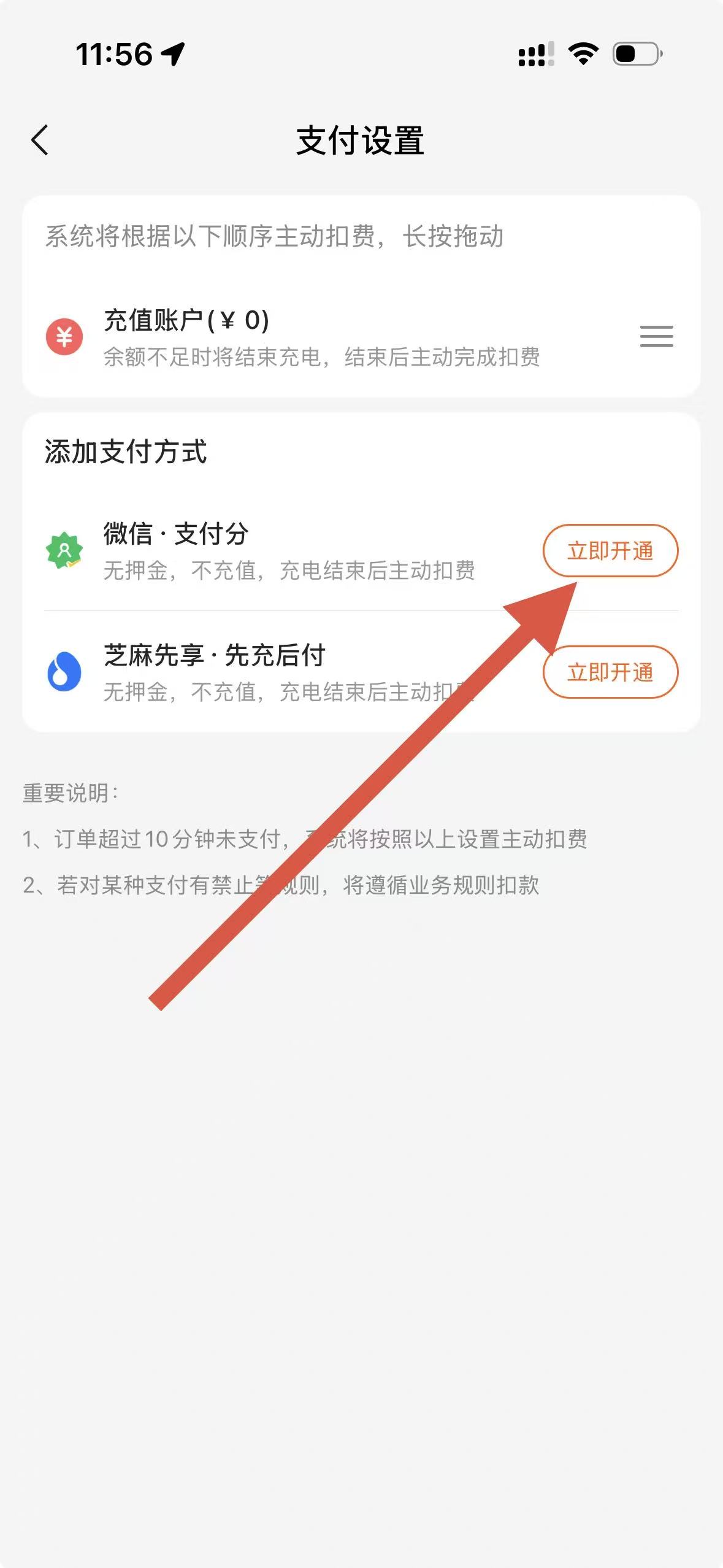 4、在支付设置页面的添加支付方式栏,找到微信·支付分,点击其右侧立即开通按钮完成操作。