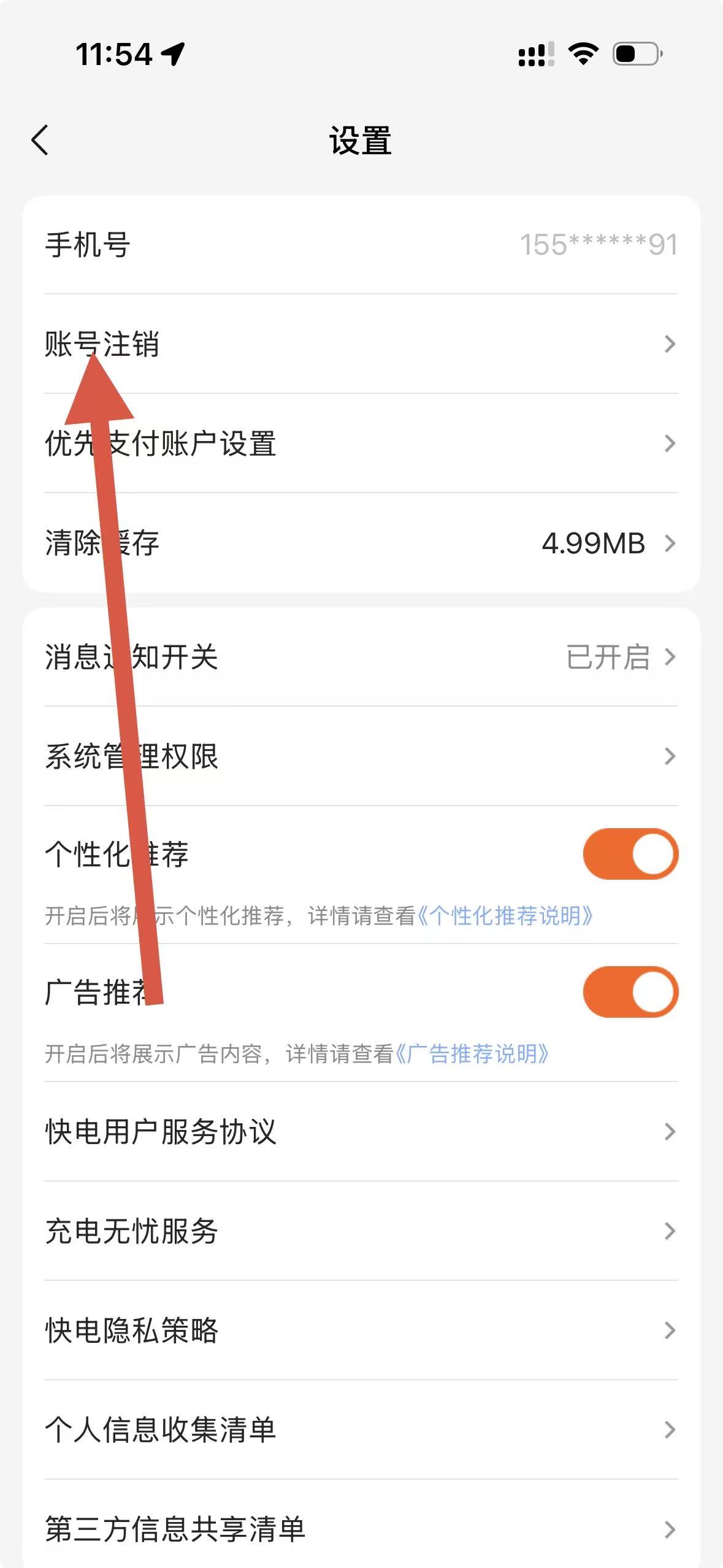 3、在设置界面里,点击账号注销选项进入账号注销页面。