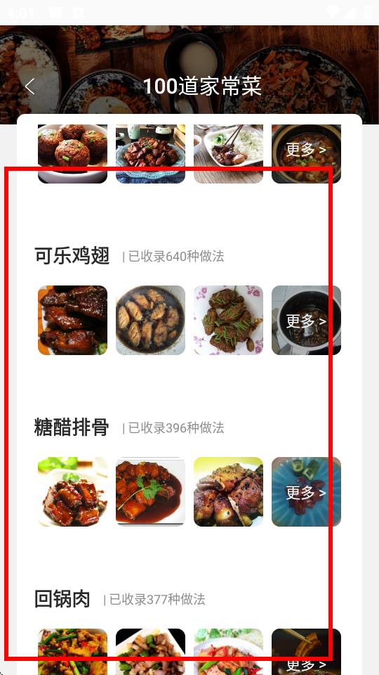 2、进入100道家常菜页面后,选择想做的菜品,比如可乐鸡翅。