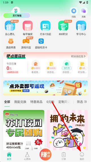 1、打开苏打校园app,点击底部导航栏中的我的选项。