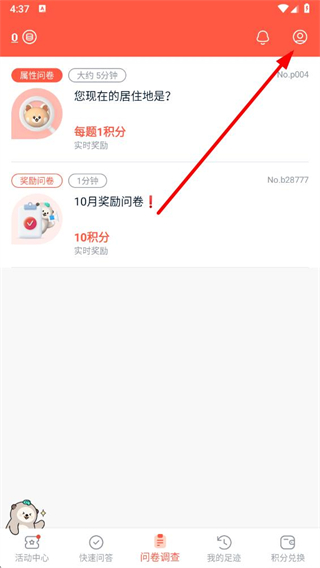 好友每成功完成一份红包问卷,额外得10积分。