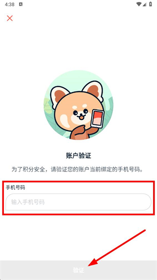 3、在账户验证页面,按提示输入当前绑定的手机号码,点击验证按钮。