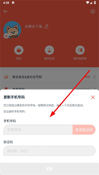 4、验证通过后,在更新手机号码界面,输入新手机号码获得验证码,点击更新完成手机号修改。
