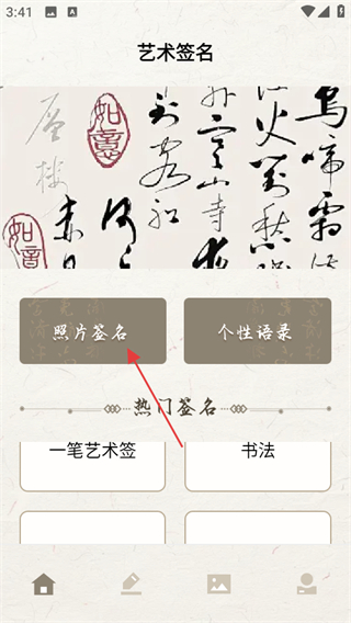 1、进入艺术签名页面,点击照片签名,进入照片制作页面。