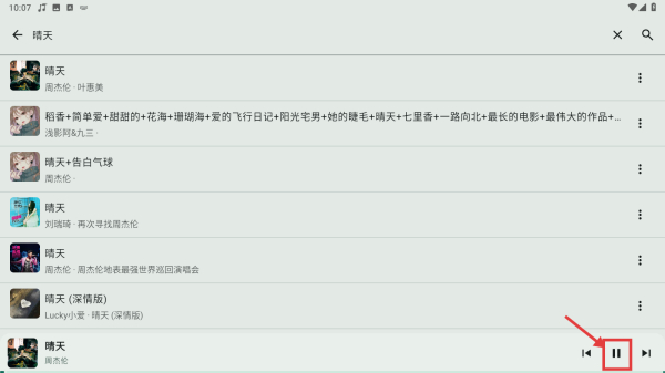 4、点击播放按钮,开始播放周杰伦的晴天音乐。
