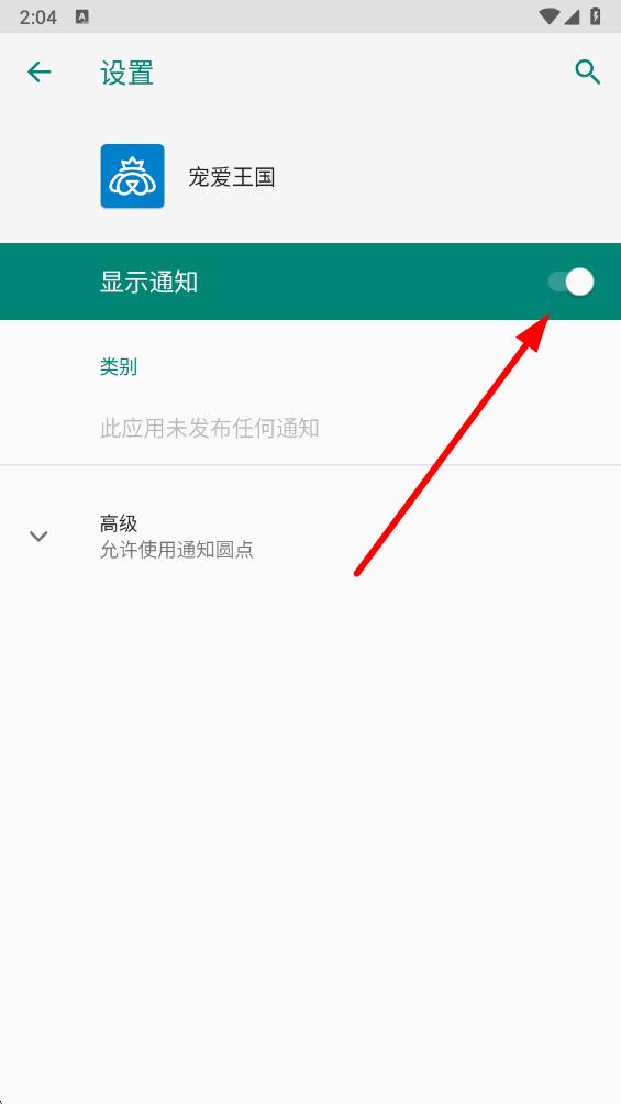 4、在通知设置页面,点击显示通知右侧的开关按钮,将其关闭,即可关闭通知消息。