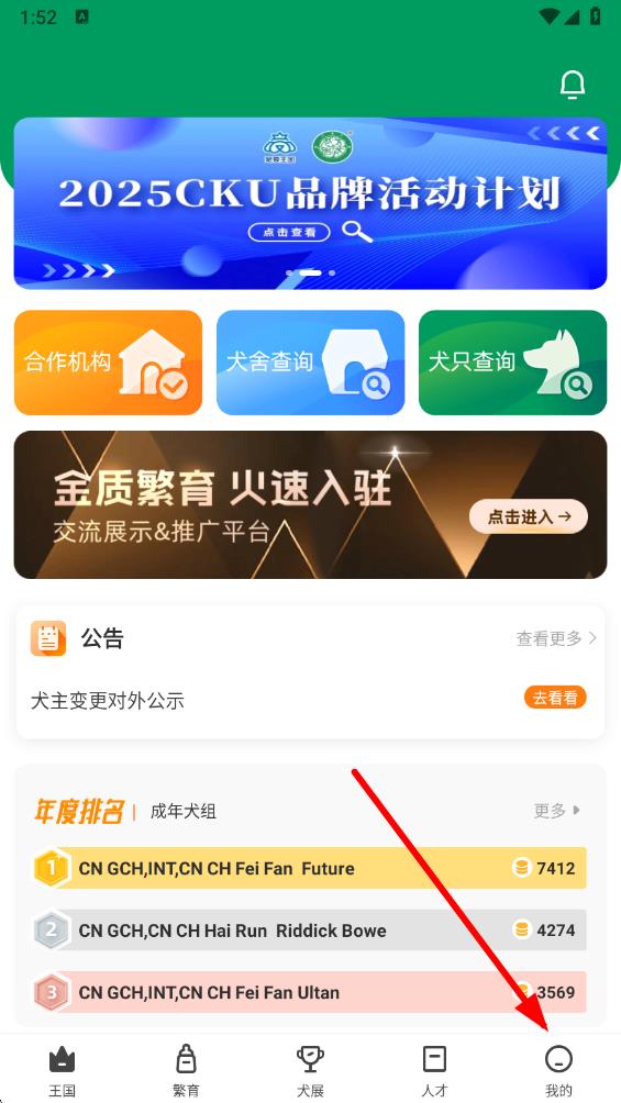 1、打开宠爱王国app,在首页点击右下角我的选项,进入个人中心页面。