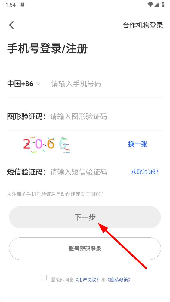 4、在手机号登录注册页面,依次输入手机号码、验证码,完成后点击下一步,按照提示完成后续操作,即可注册并绑定手机号。