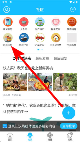 3、进入吃遍仙桃板块,点击感兴趣的帖子。