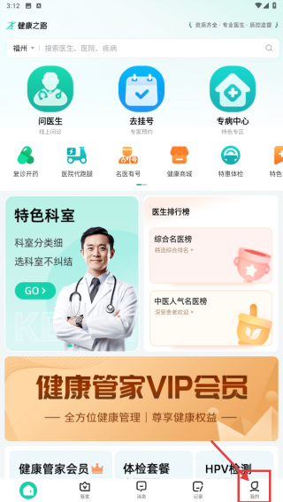 1、打开健康之路APP,点击底部我的选项,进入个人中心页面。